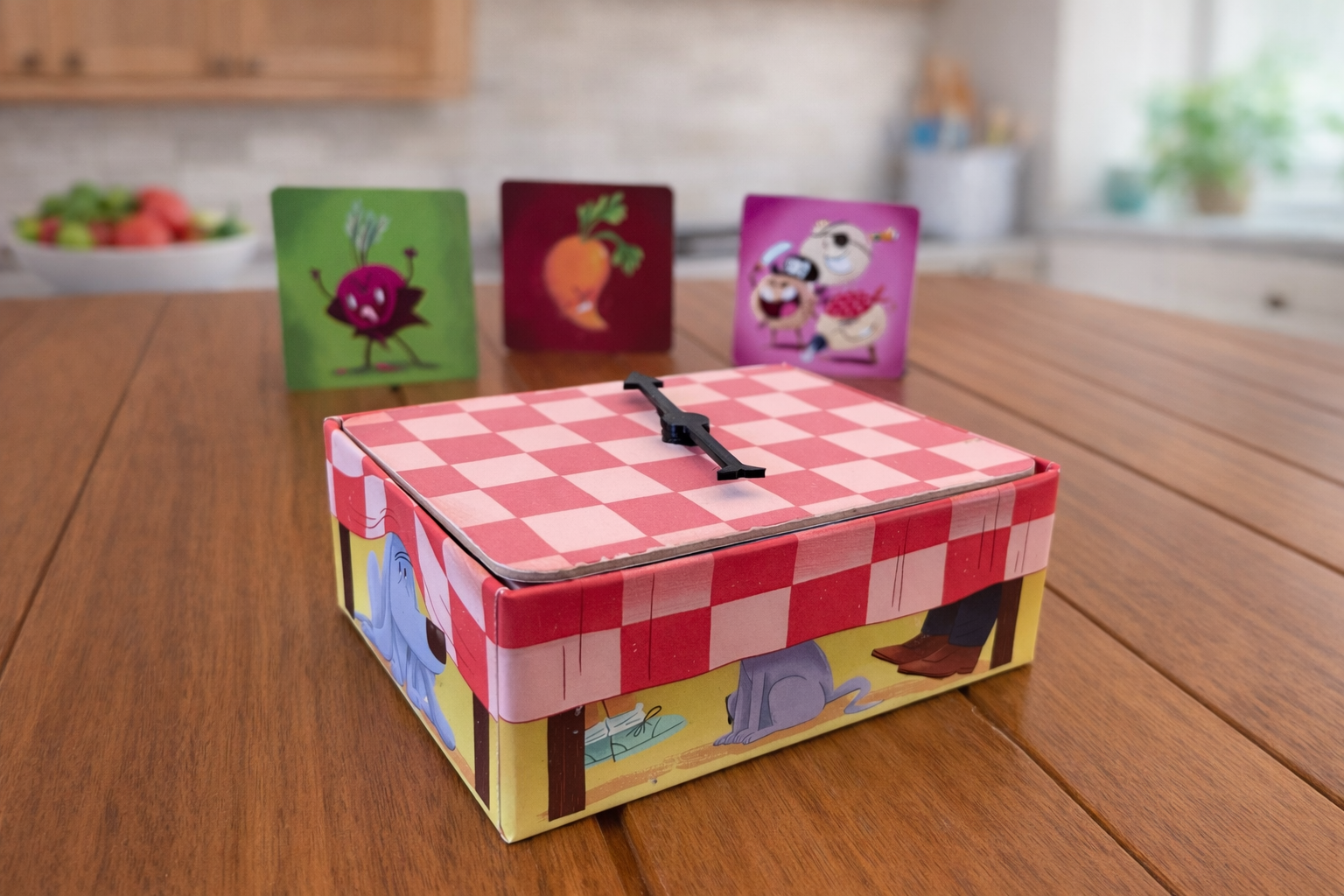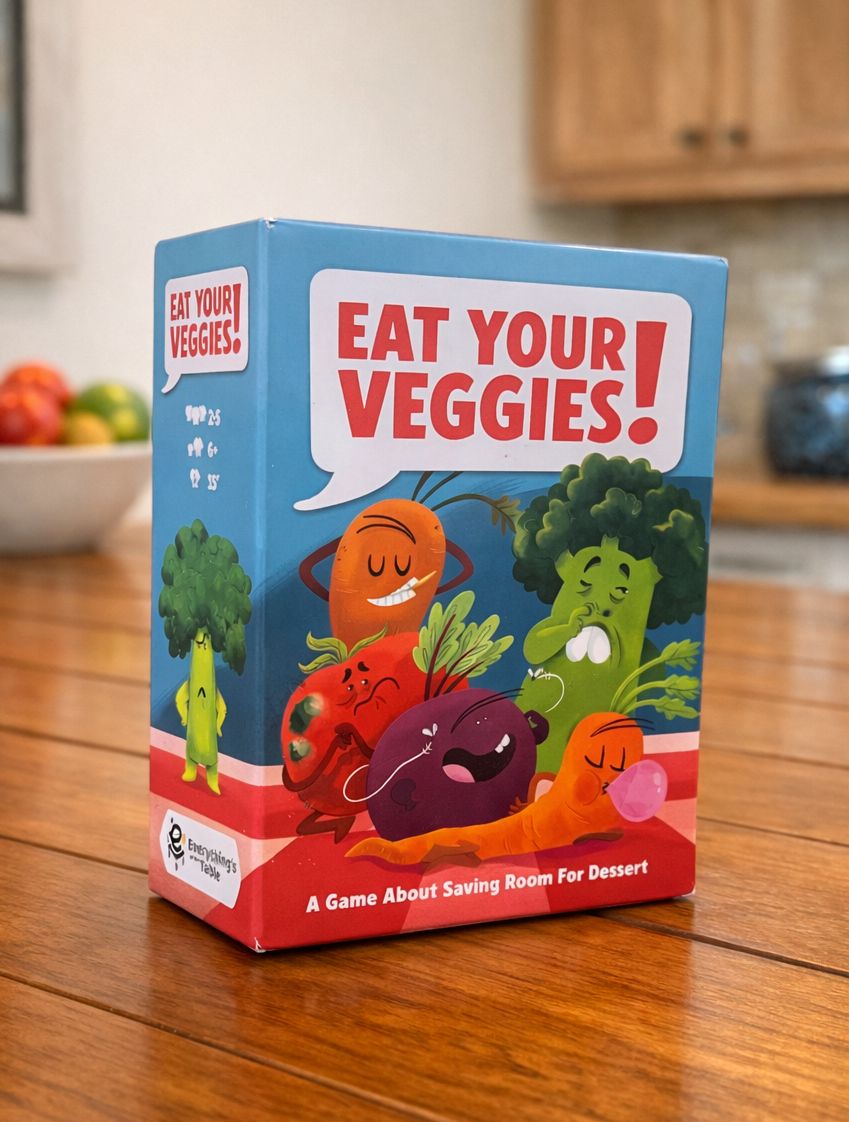 Eat Your Veggies! is a fast, fun family game about dodging vegetables, collecting desserts, and sneaking food to the dog - without getting caught.